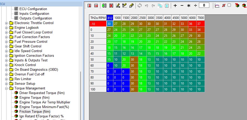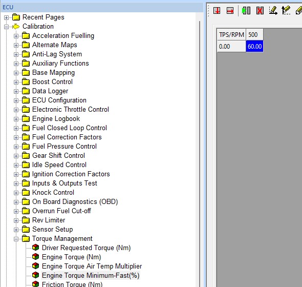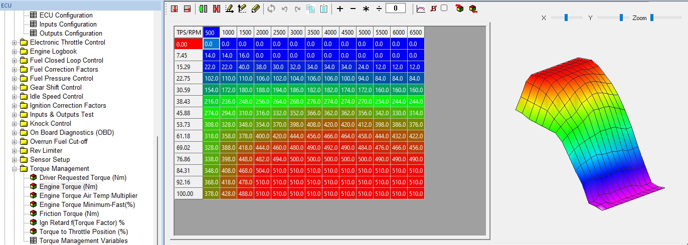Example Engine Torque map – this should be calibrated on a dyno or rolling road, it can be estimated from a full load power curve