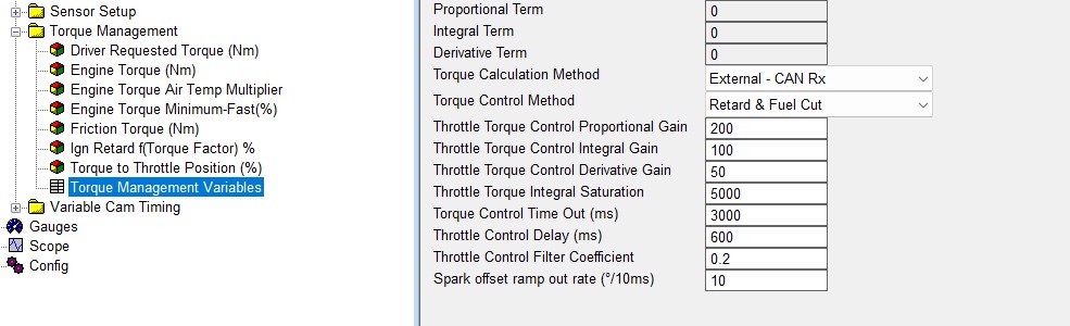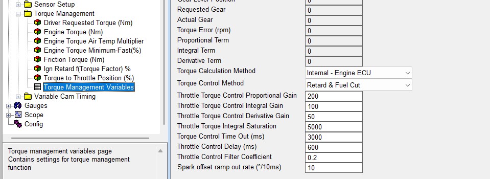Torque Manager variables as below: