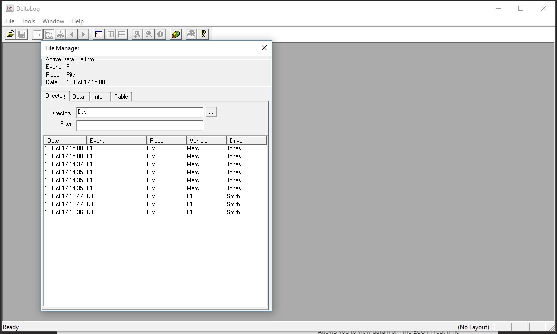 Start the DeltaLog software and choose File -> Open. In the Directory tab double click the log of interest.