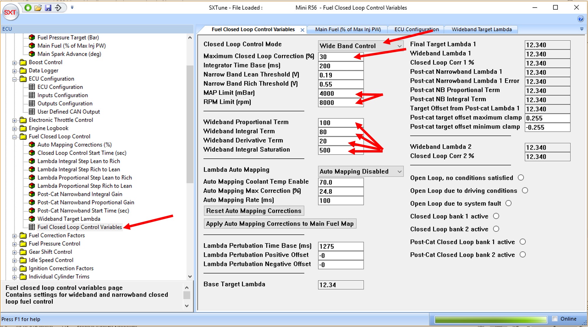 1. In the Fuel Closed Loop Control group, select Fuel Closed Loop Control Variables and set closed Loop Control Mode to Wide Band Control.