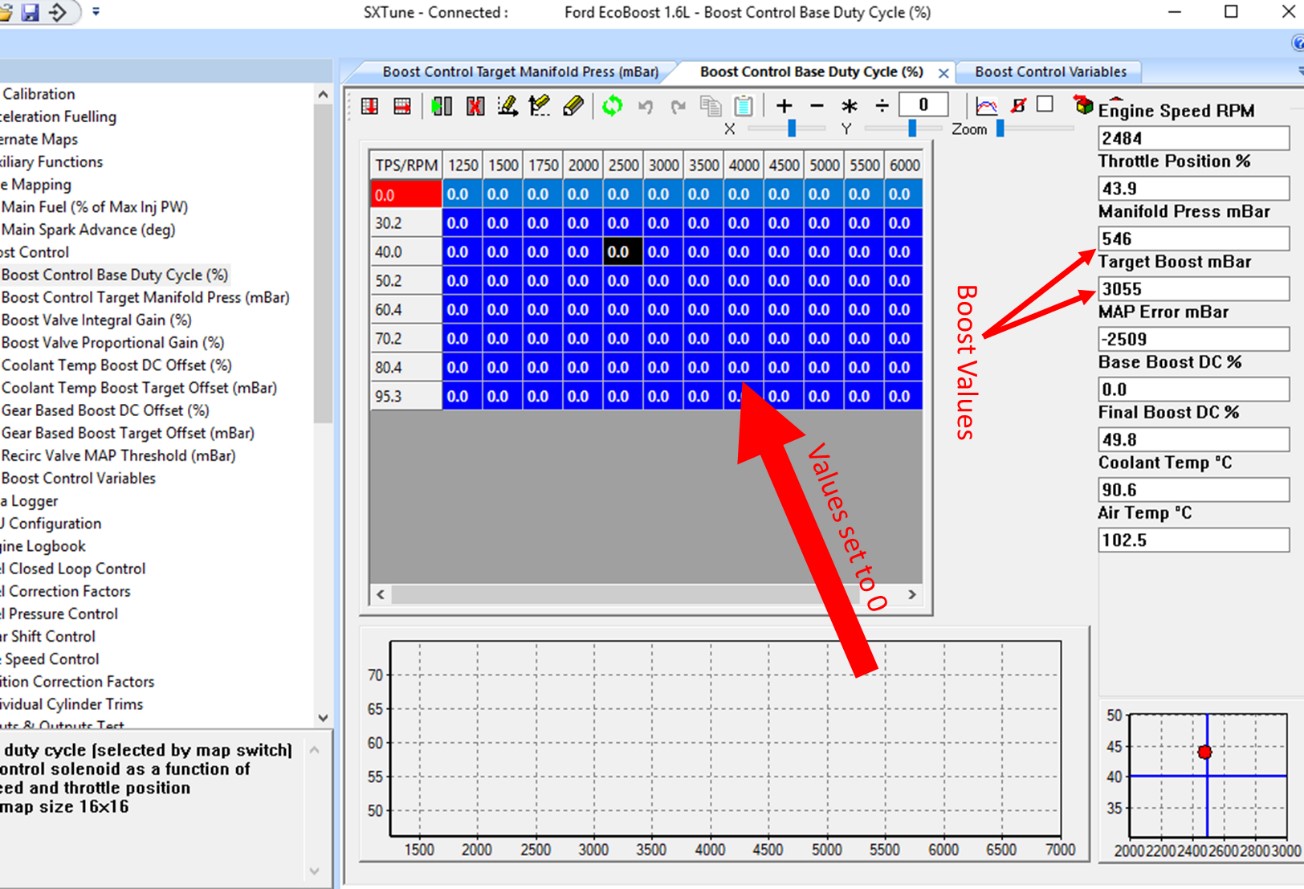 Using SXtune software, boost is configured through 4 related maps which are found in the “Boost Control” group. These maps are:
