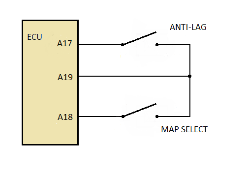 Auxiliary inputs (e.g. map switch,anti lag) are switched to Analog Ground (either A19 or A30).